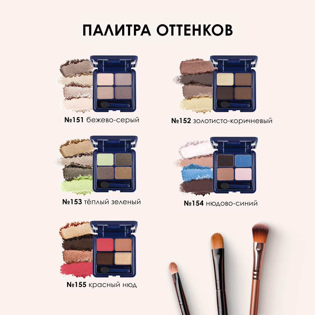 Тени четырехцветные для век, №151 бежево-серый / Velvet Moon 4,8 гр