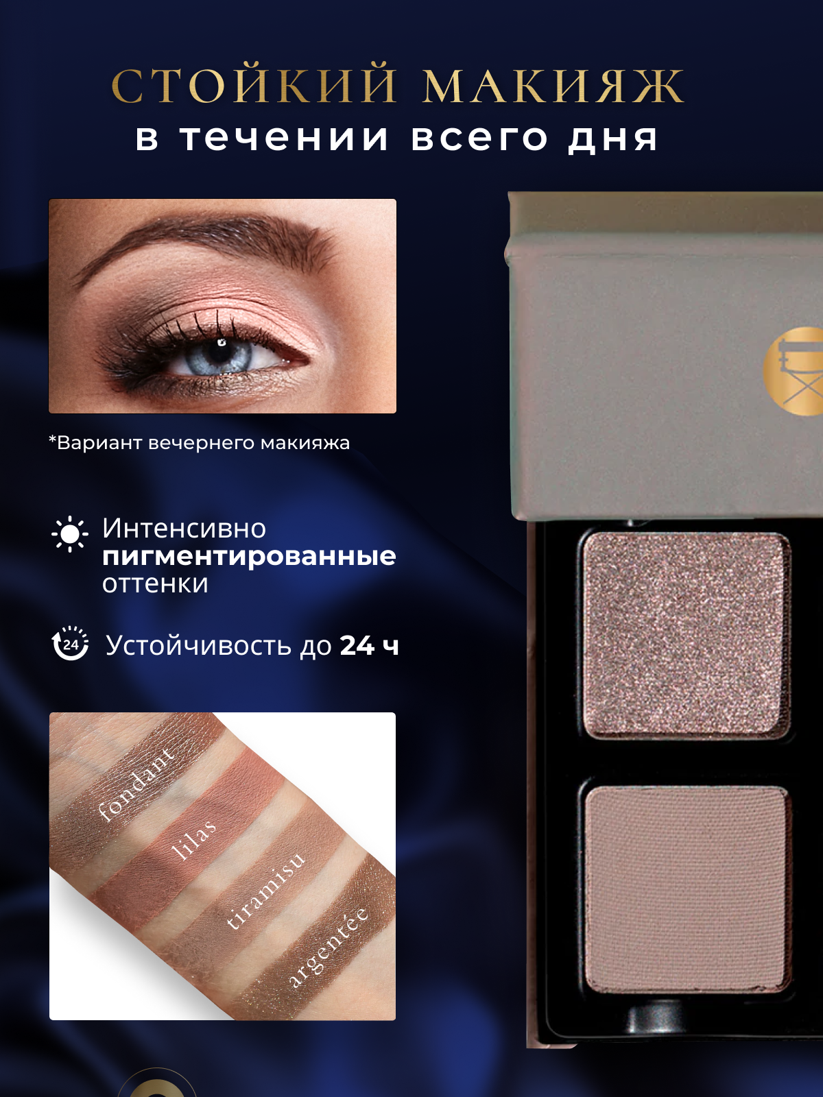 | Способ применения | Нанести тени на поверхность подвижного века с помощью аппликатора или кисти |