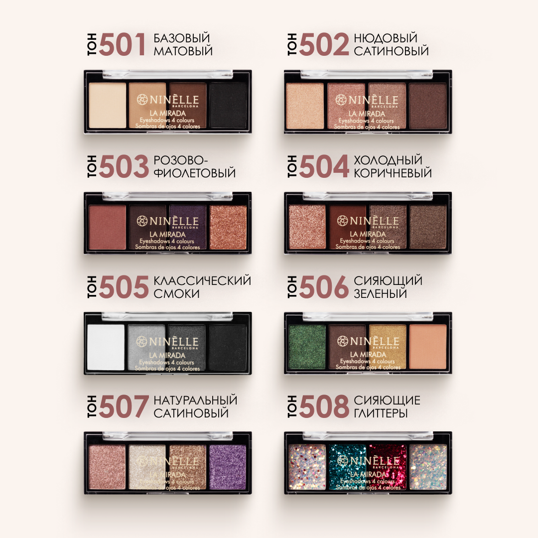 СохранитьNINELLE Тени для век 4 оттенка LA MIRADA №507, натуральный сатиновый интересное: