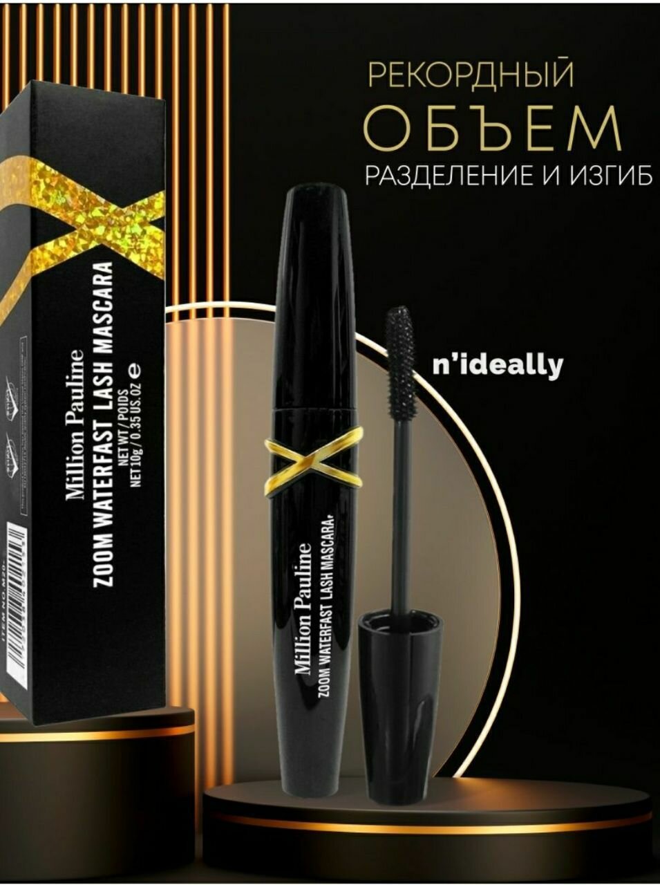 Тушь для ресниц удлиняющая объёмная черная Million Pauline Volume Zoom Waterfast Lash Mascara / Щеточка миллион XXL подкручивающая рост, удлинение и объем с эффектом накладных ресниц