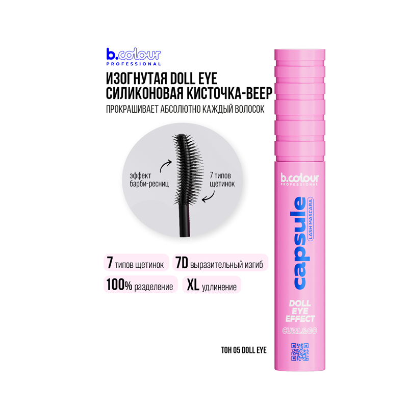 B.COLOUR PROFESSIONAL Тушь для ресниц, термотушь черная подкручивающая, удлиняющая, CAPSULE 05 Doll eye