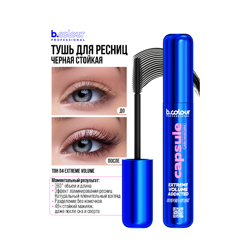 B.COLOUR PROFESSIONAL Тушь для ресниц, термотушь, объем и удлинение CAPSULE, 04 Extreme volume