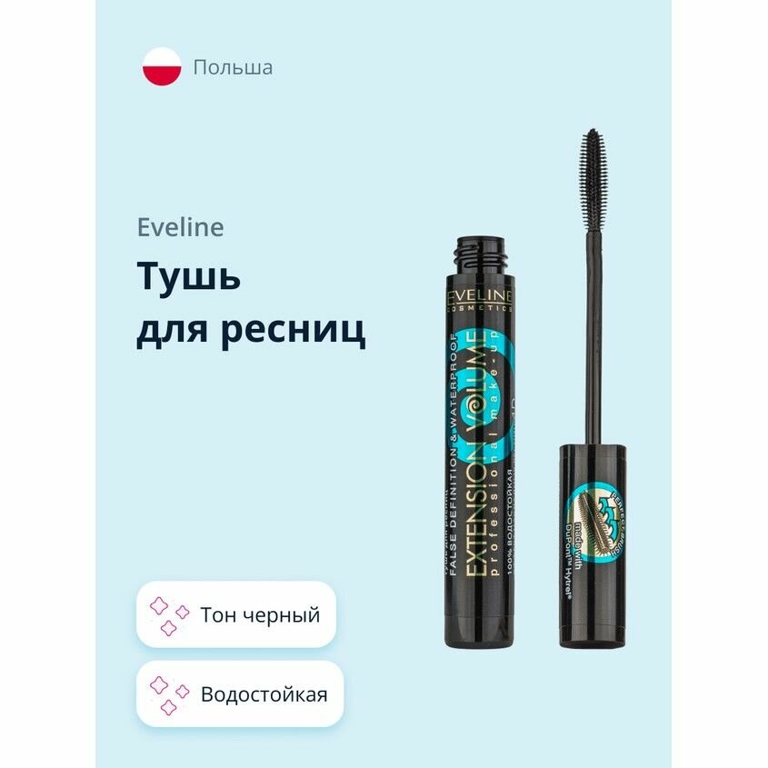 Ниже Вы можете прочитать отзывы на Eveline Cosmetics Тушь для ресниц Extension Volume False Definition & Waterproof, черный, ознакомится с подробными характеристиками, посмотреть интересные обзоры и фотографии на Eveline Cosmetics Тушь для ресниц Extension Volume False Definition & Waterproof, черный.