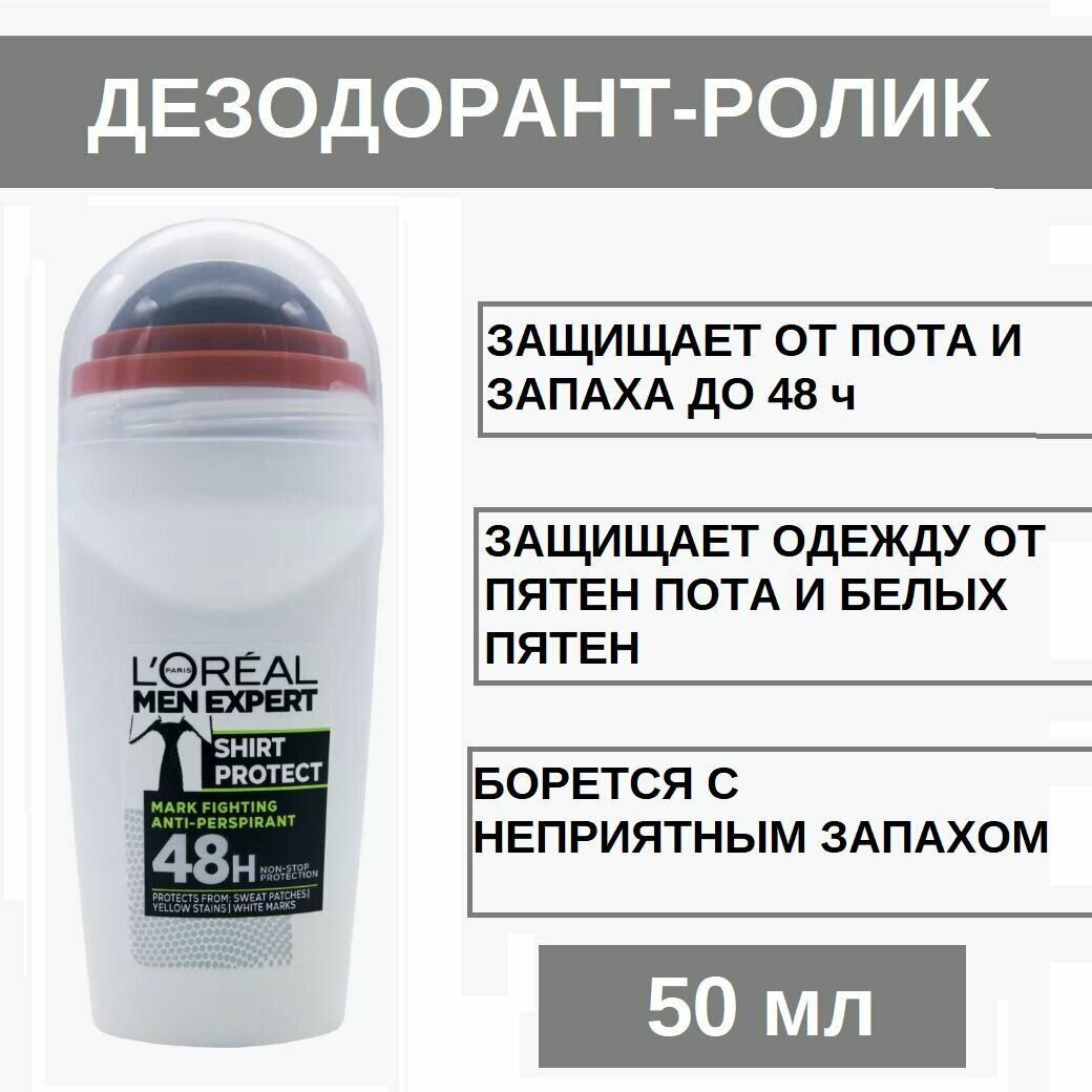 L'Oreal Men Expert Роликовый дезодорант-антиперспирант "Защита Рубашки",антипятна, мужской, 50мл интересное: