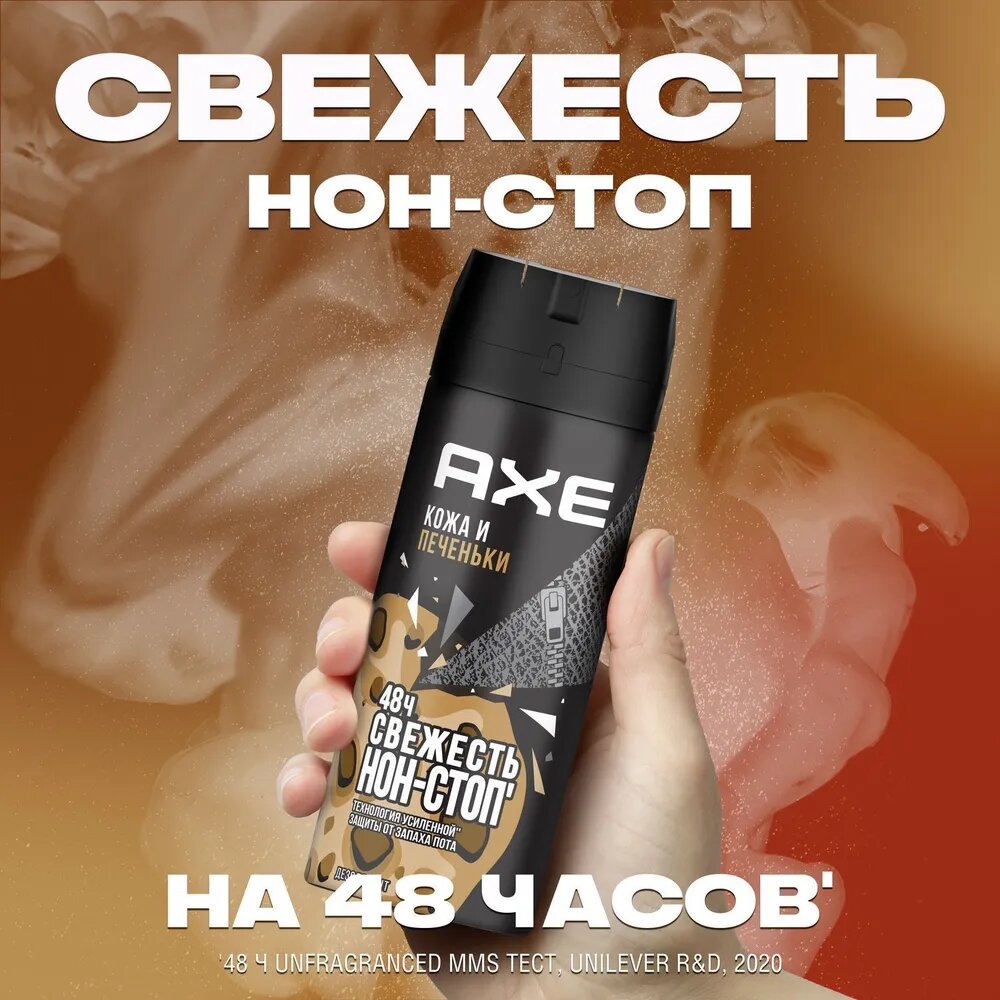 Дезодорант AXE "Кожа и печеньки", мужской, спрей, аромат, 6 шт, 48 ч