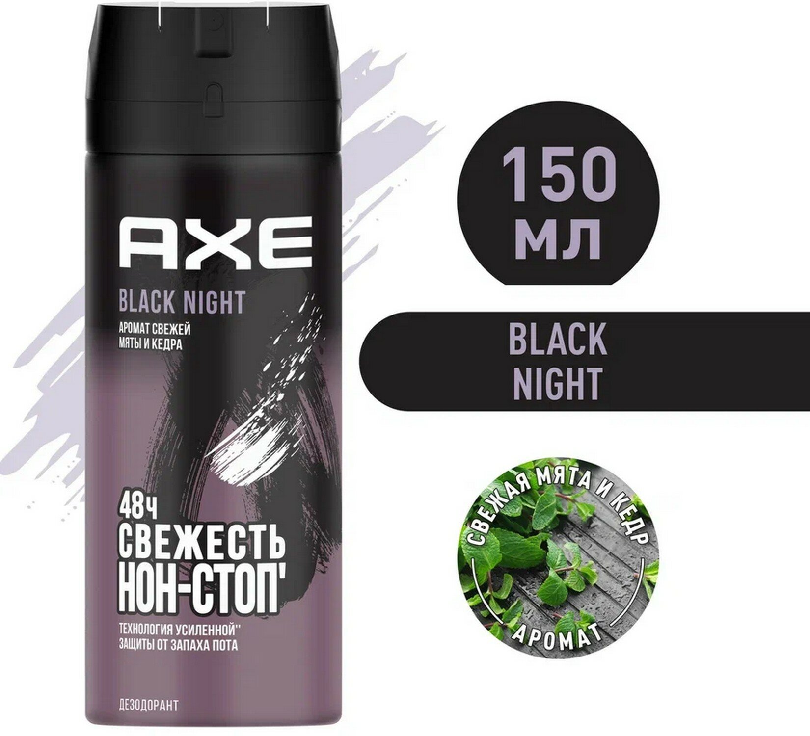 СохранитьAxe дезодорант-спрей мужской Black Night с мятой и кедром, 48 часов защиты 150 мл - 6 шт интересное: