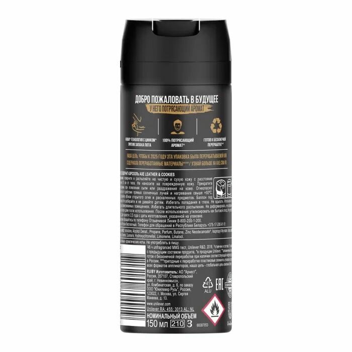 Axe Дезодорант-аэрозоль Leather & Cookies Кожа и печеньки, 150 мл