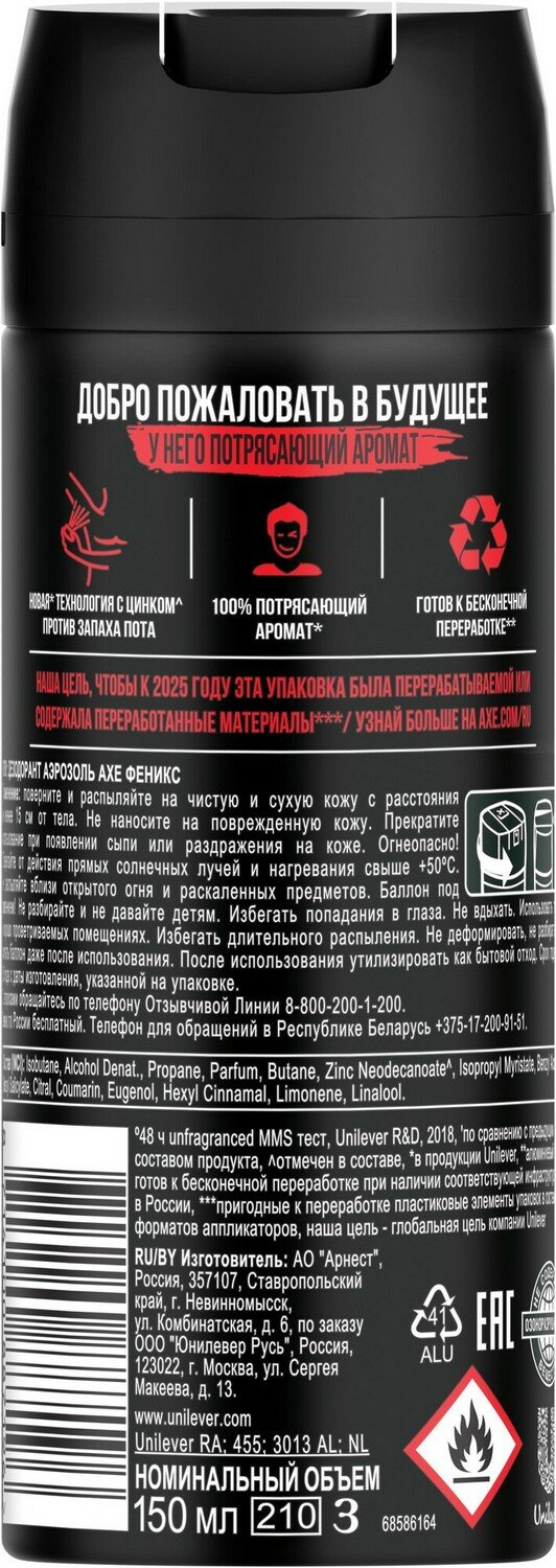 Axe Дезодорант-аэрозоль Phoenix, 150 мл, 6 шт