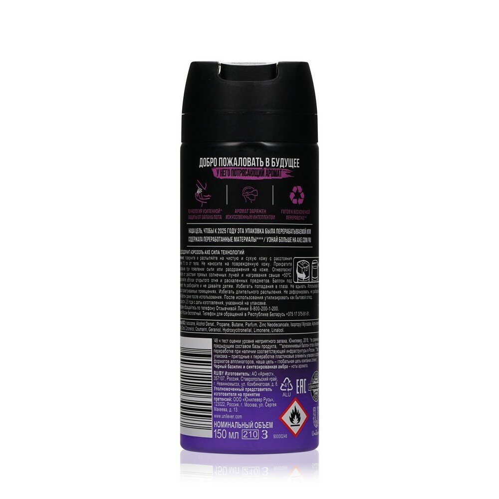 AXE дезодорант-аэрозоль с защитой от запаха пота до 48 часов и топовым ароматом заряженным искусственным интеллектом 150 мл интересное: