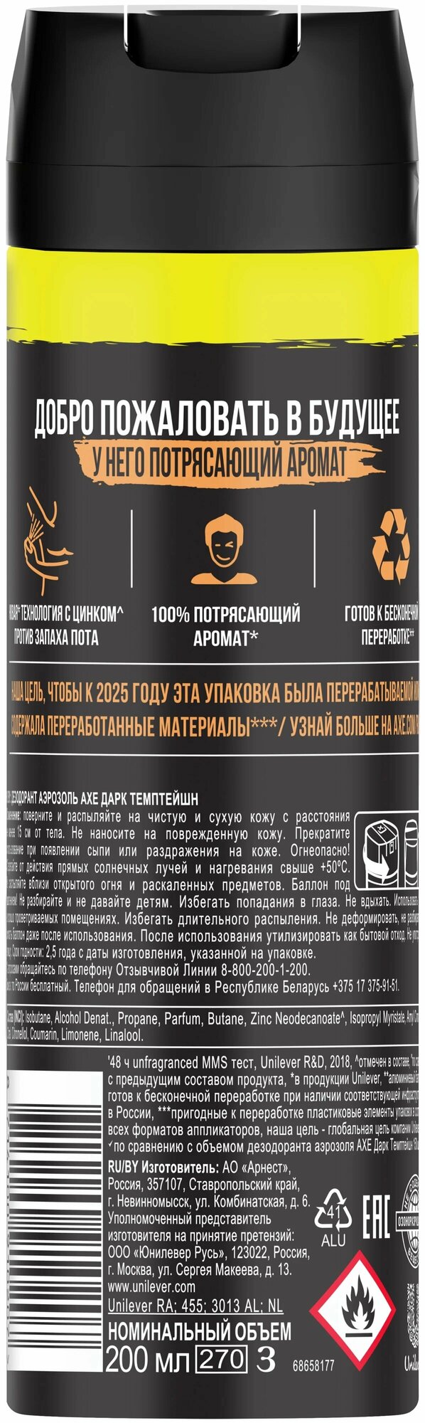 Дезодорант аэрозоль AXE Dark Temptation XL мужской, 200 мл