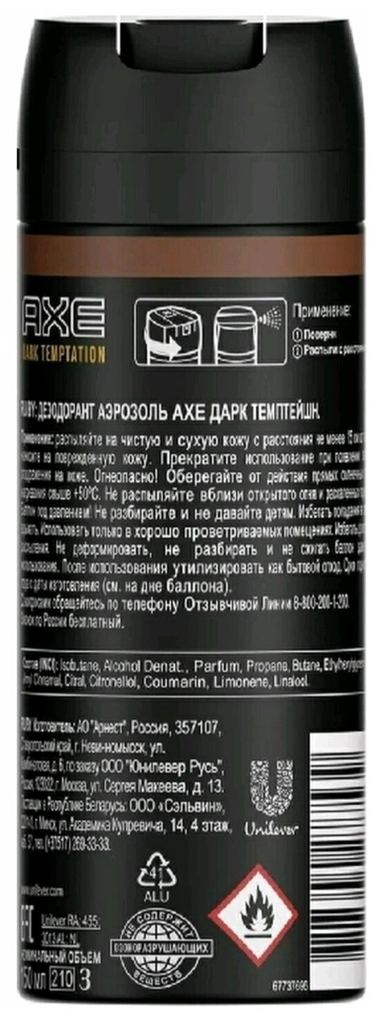 СохранитьAXE мужской дезодорант-спрей DARK TEMPTATION Тёмный шоколад/ 2x150 мл интересное:
