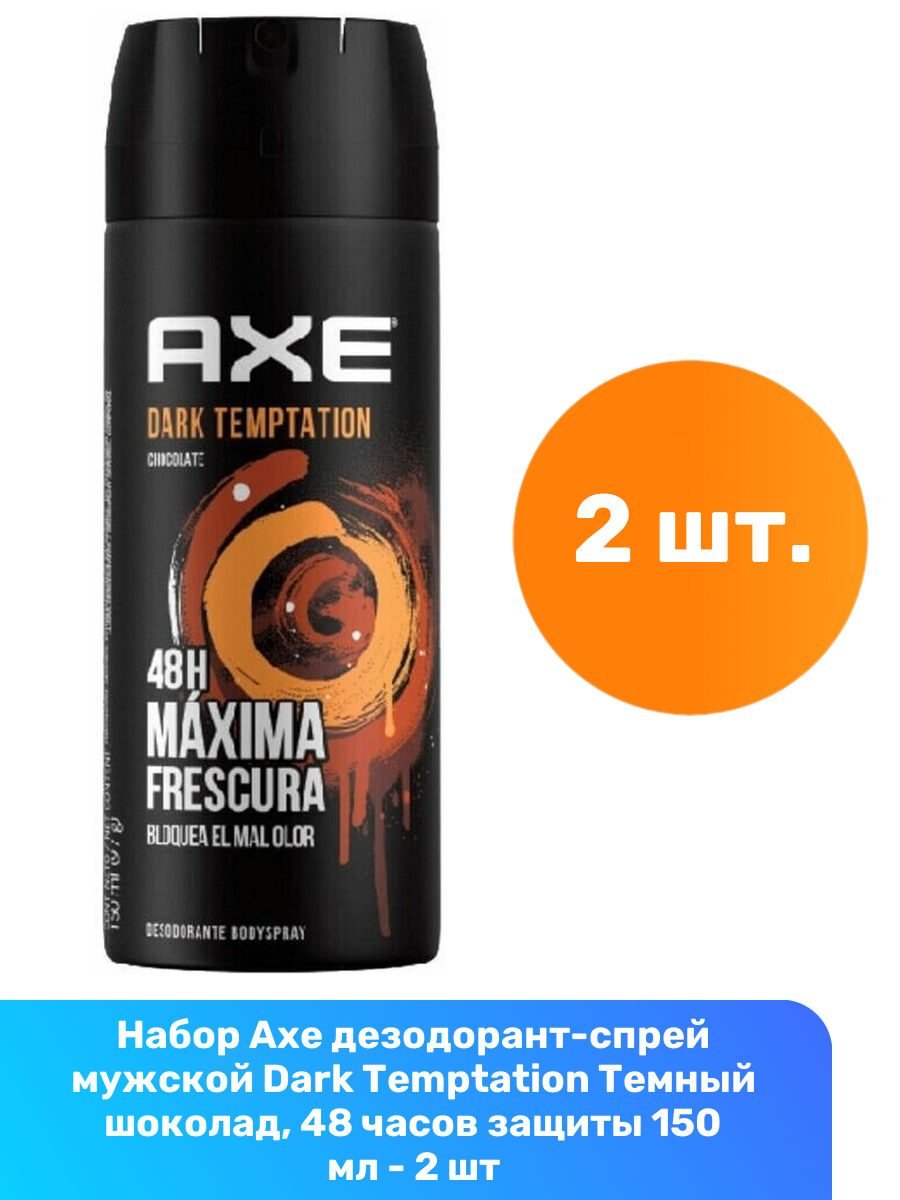 Axe дезодорант-спрей мужской Dark Temptation Темный шоколад, 48 часов защиты 150 мл - 2 шт