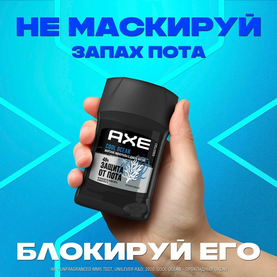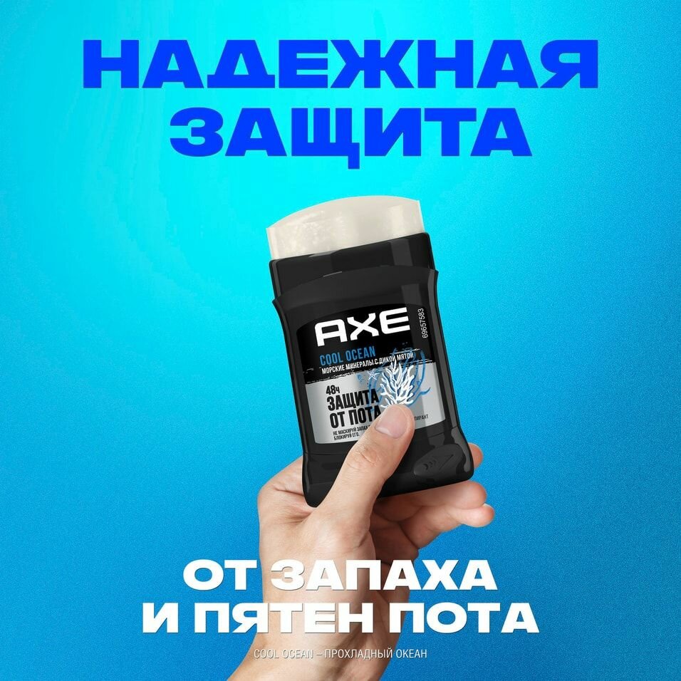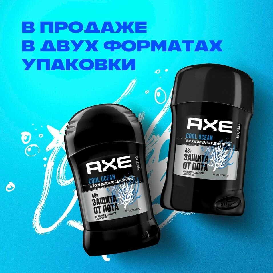 AXE антиперспирант-карандаш COOL OCEAN с защитой от запаха пота до 48 часов и топовым акватическим ароматом 50 мл