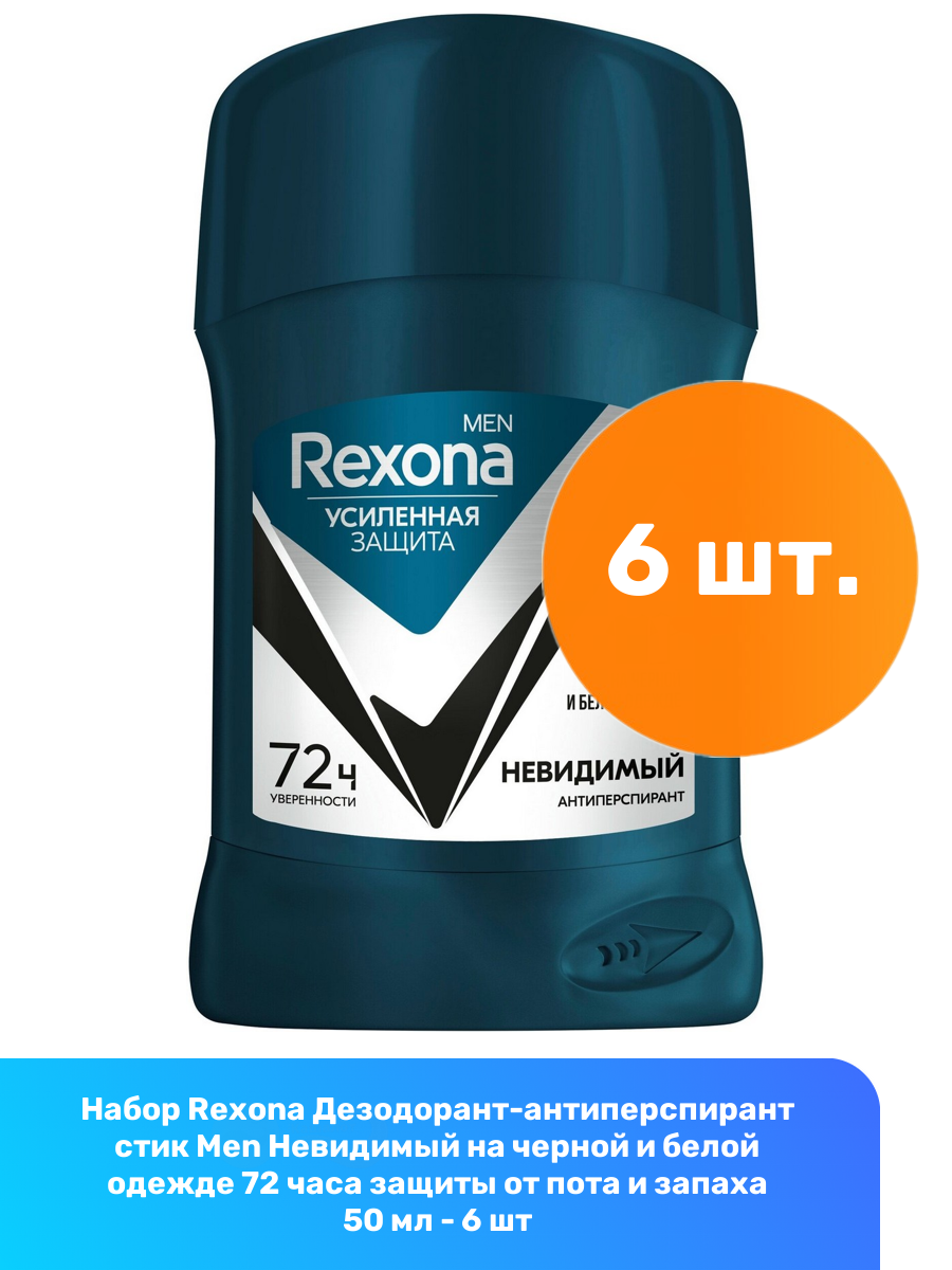 Купить Rexona Дезодорант-антиперспирант стик Men Невидимый на черной и белой одежде 72 часа защиты от пота и запаха 50 мл - 6 шт