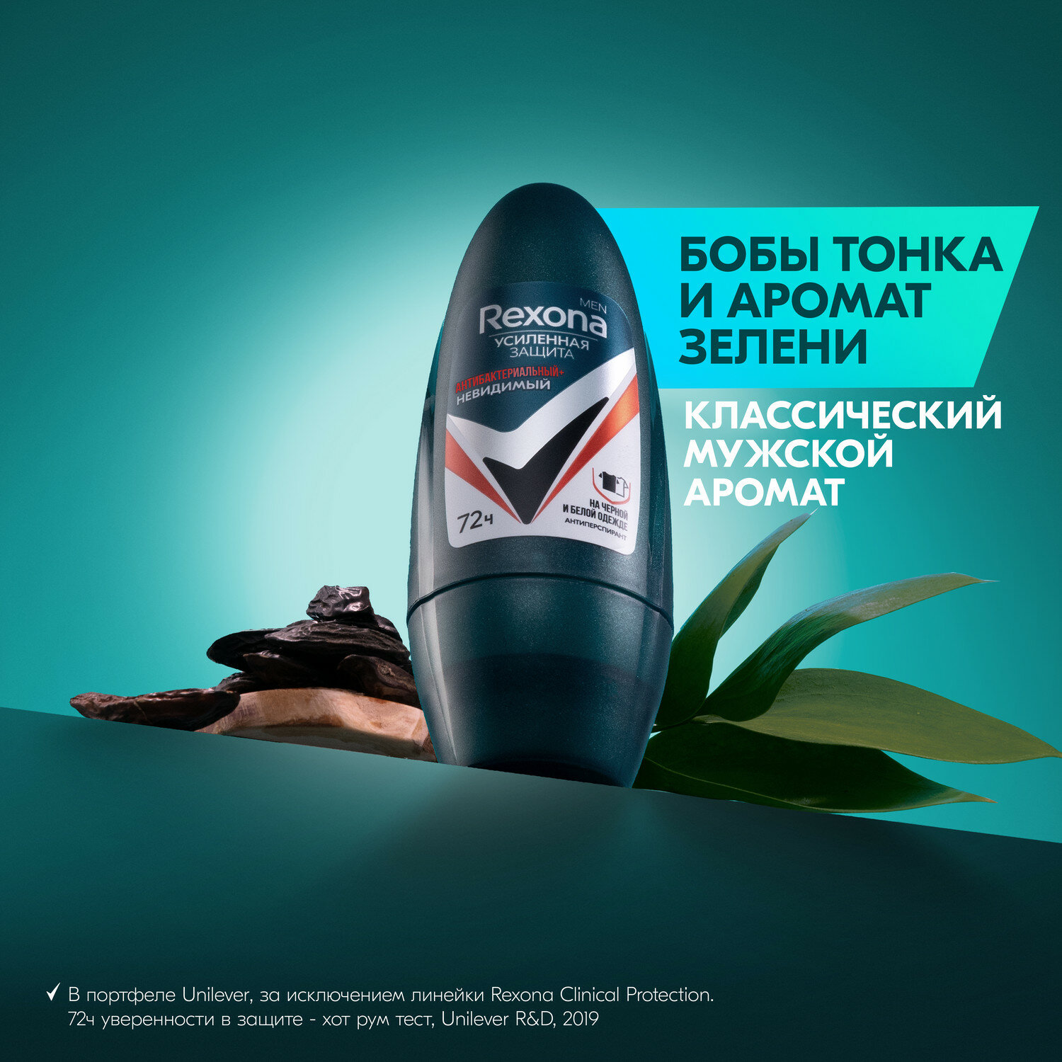 Дезодорант мужской шариковый антиперспирант Рексона Антибактериальный и Невидимый на черной и белой одежде, 50 мл,