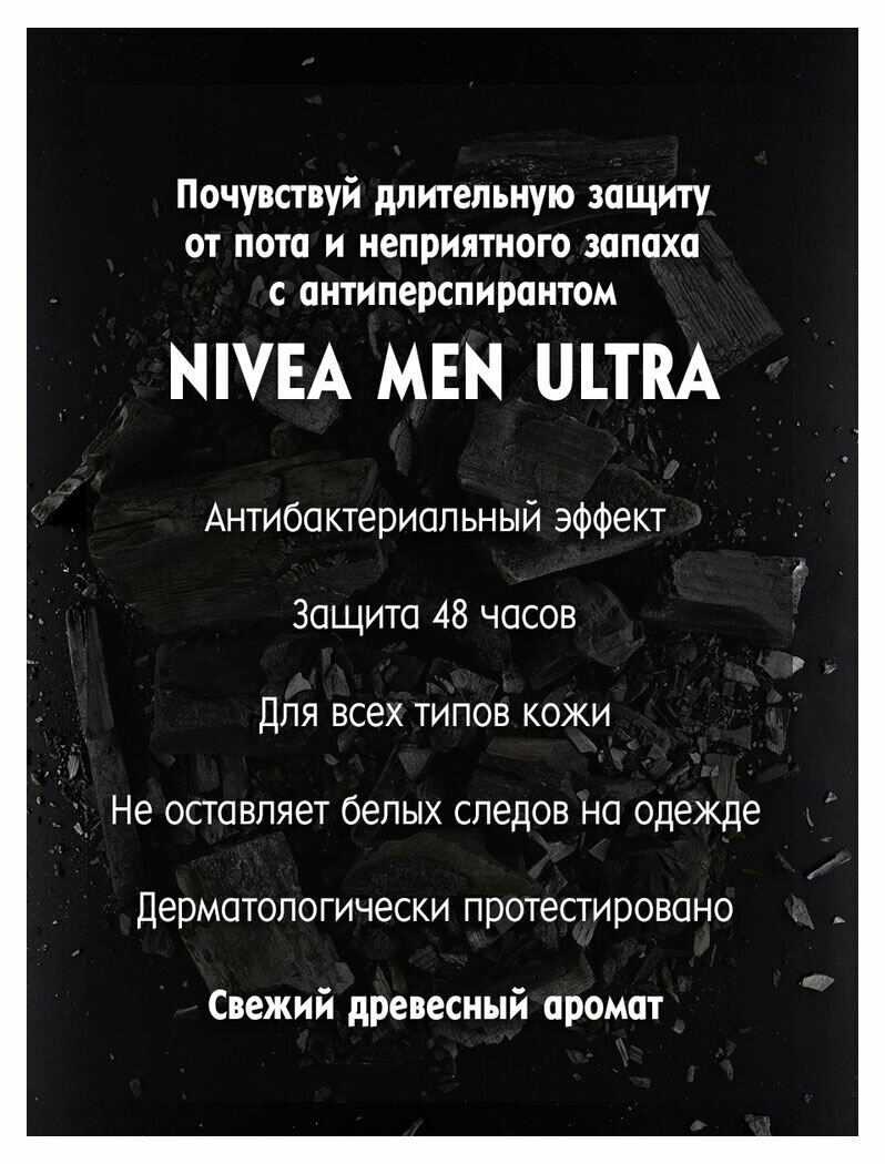 Дезодорант-антиперспирант шариковый NIVEA MEN ULTRA с антибактериальным эффектом, 2 x 50 мл (2 штуки)