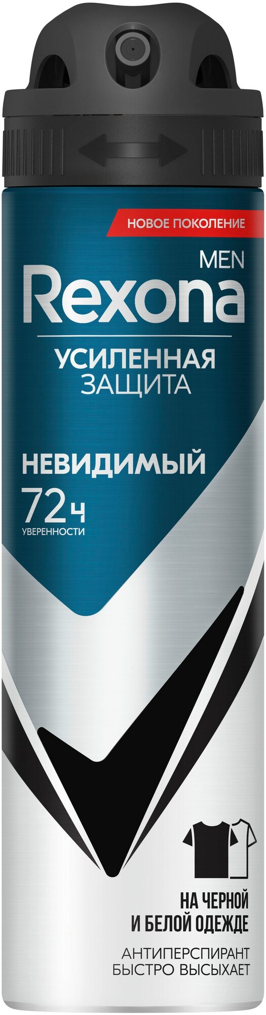 Rexona Men антиперспирант аэрозоль усиленная защита 72ч уверенности Невидимый на черной и белой одежде, 150 мл