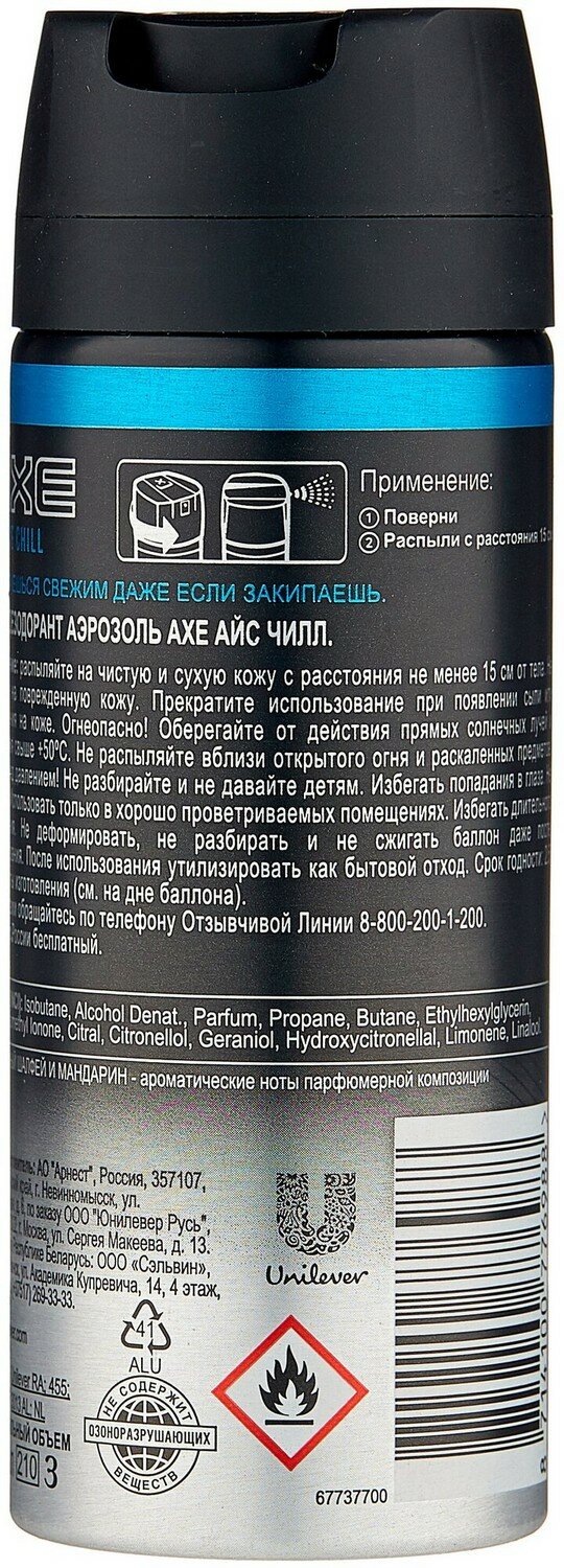 Unilever (Юнилевер) Дезодорант-аэрозоль Axe Ice Chill 150 мл