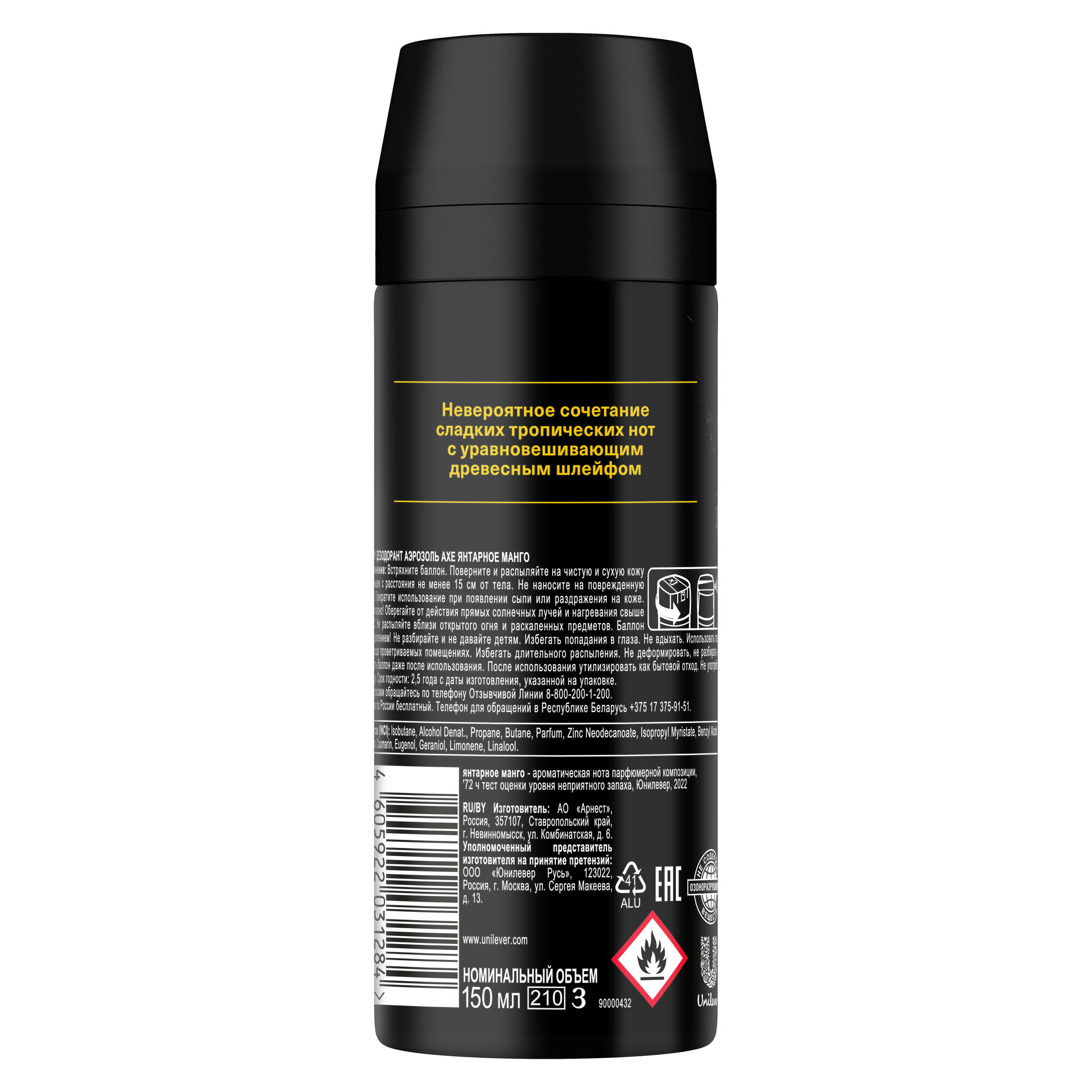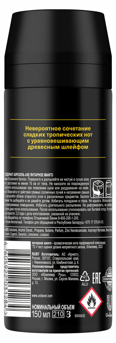 AXE Дезодорант аэрозоль 72ч Янтарное манго 150мл 4605922031284