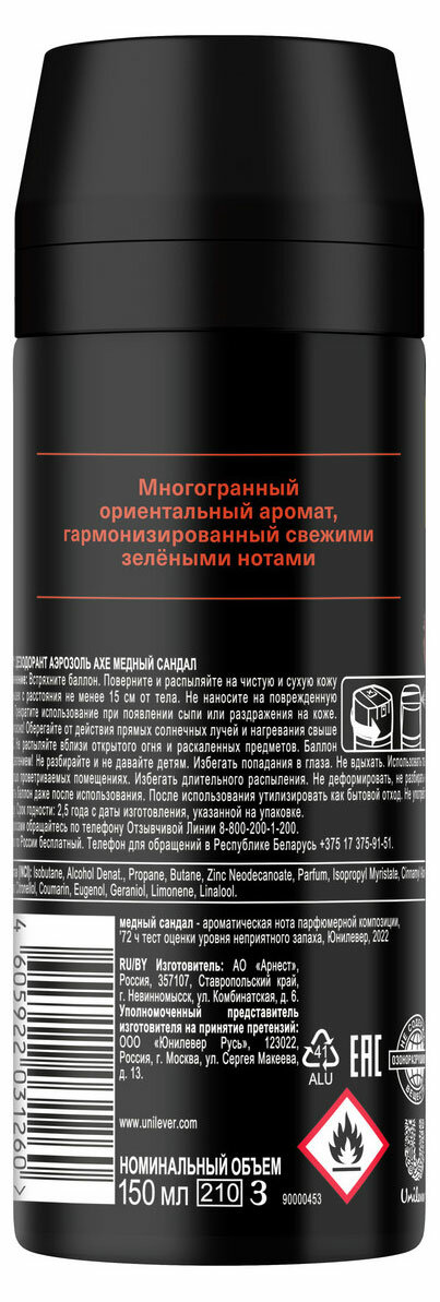 Ниже Вы можете прочитать отзывы на AXE парфюмированный дезодорант аэрозоль 72ч защиты от пота и запаха Медный сандал 150 мл, ознакомится с подробными характеристиками, посмотреть интересные обзоры и фотографии на AXE парфюмированный дезодорант аэрозоль 72ч защиты от пота и запаха Медный сандал 150 мл.