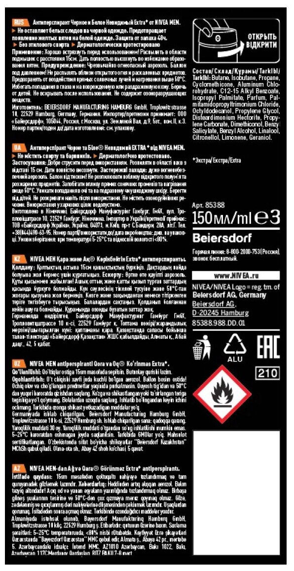 nivea_deo_спрей муж. 150мл_черн/бел невидимый extra (85388) 986003005 интересное:
