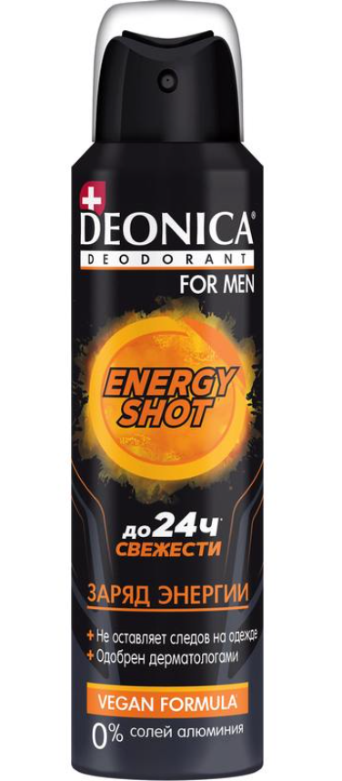 Deonica Дезодорант спрей мужской Vegan Formula Energy Shot, 150 мл