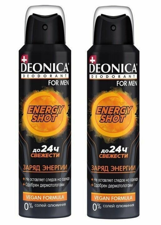 DEONICA Антиперспирант-спрей For men Energy shot Vegan Formula, 150мл, 2 шт интересное: