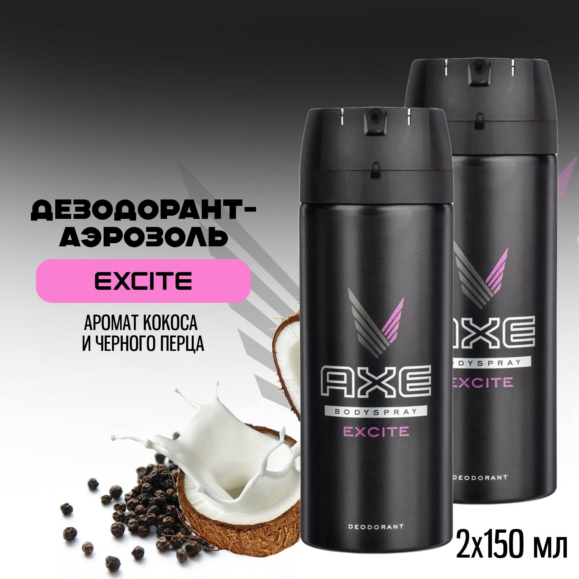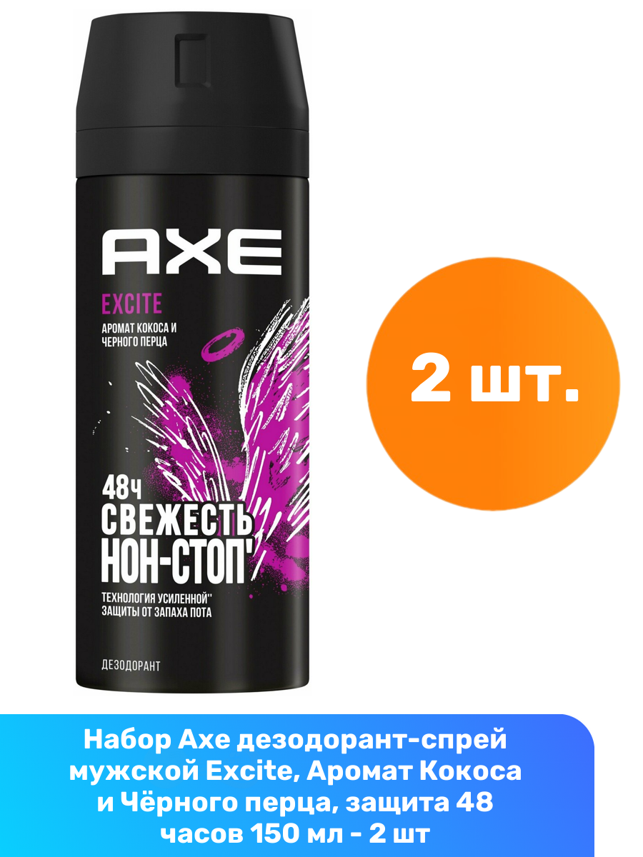 Купить Axe дезодорант-спрей мужской Excite, Аромат Кокоса и Чёрного перца, защита 48 часов 150 мл - 2 шт