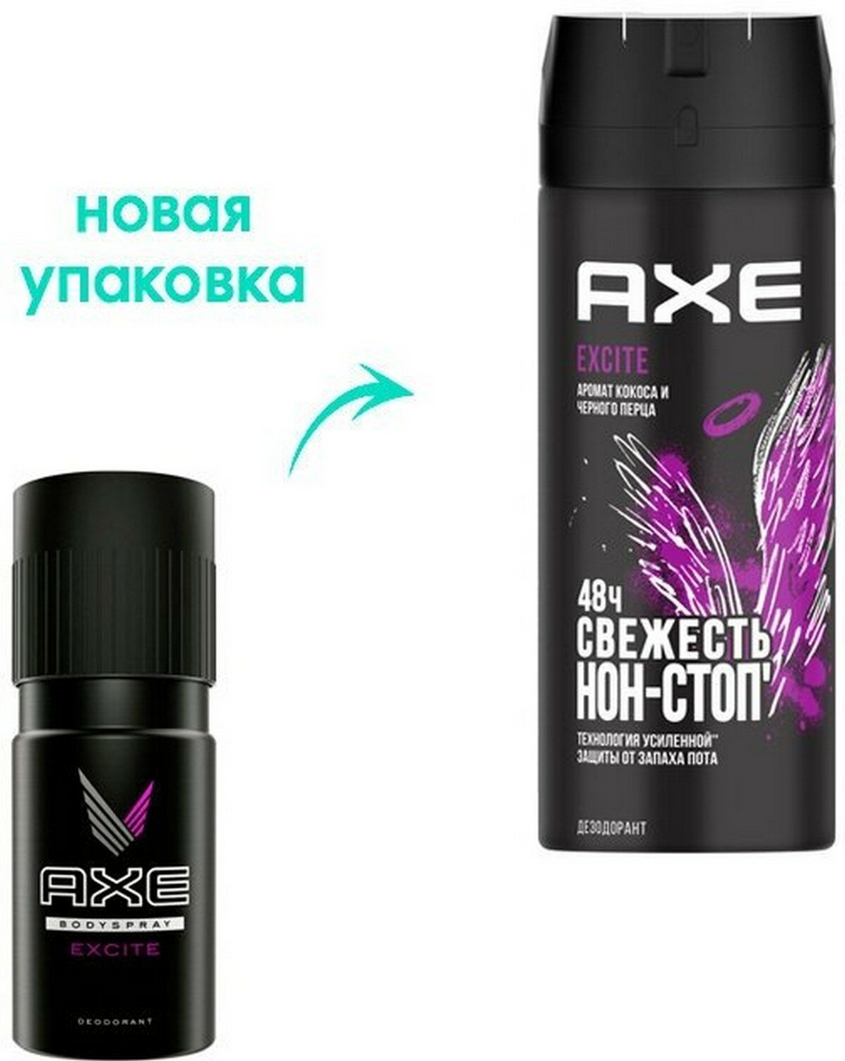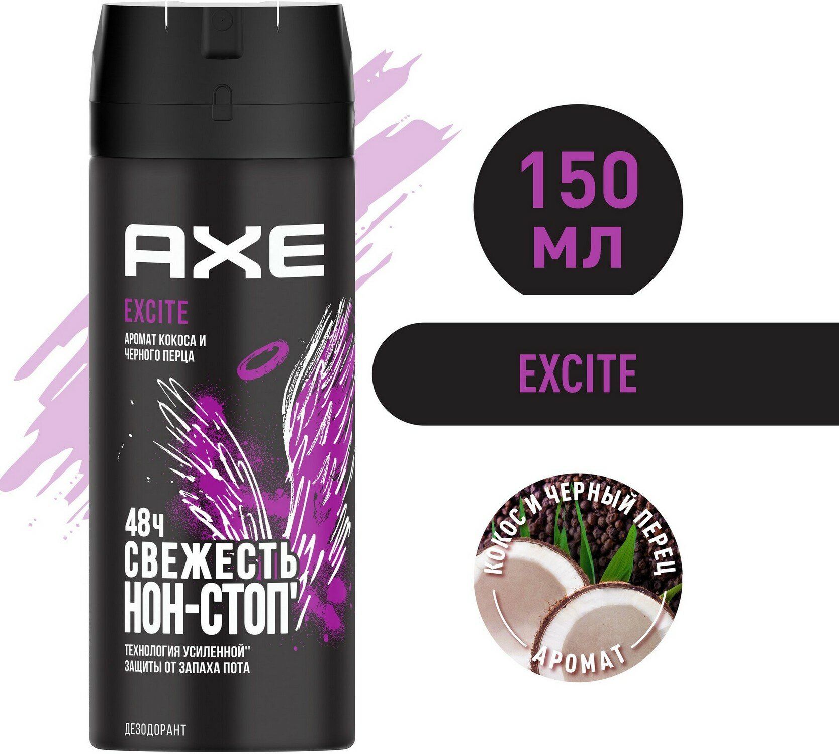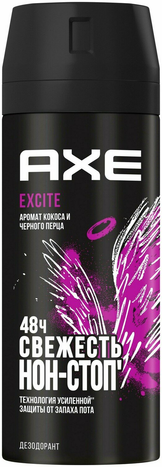 AXE мужской дезодорант спрей EXCITE, Аромат Кокоса и Чёрного перца, защита 48 часов 150 мл