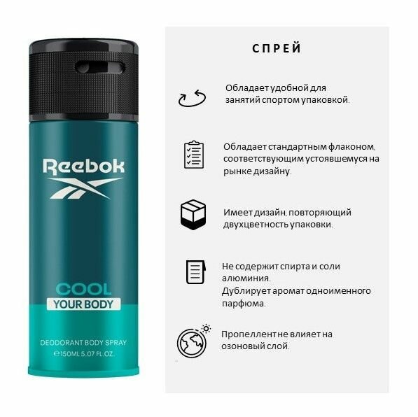 Дезодорант-спрей Reebok Cool Your Body Men 150 ml интересное: