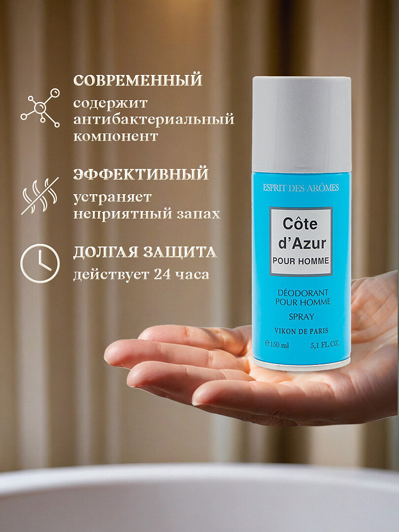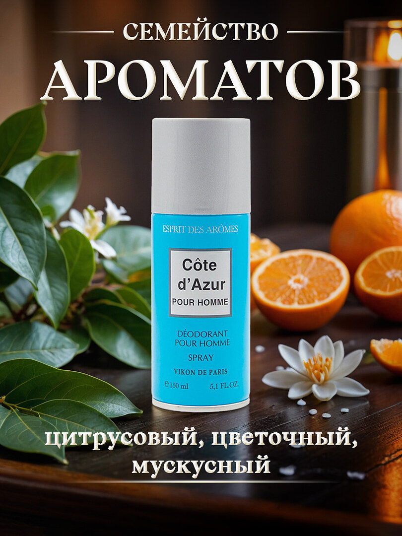 Новая Заря Vikon De Paris Cote d' Azur Дезодорант аэрозольный парфюмированный для мужчин Лазурный берег 150 мл