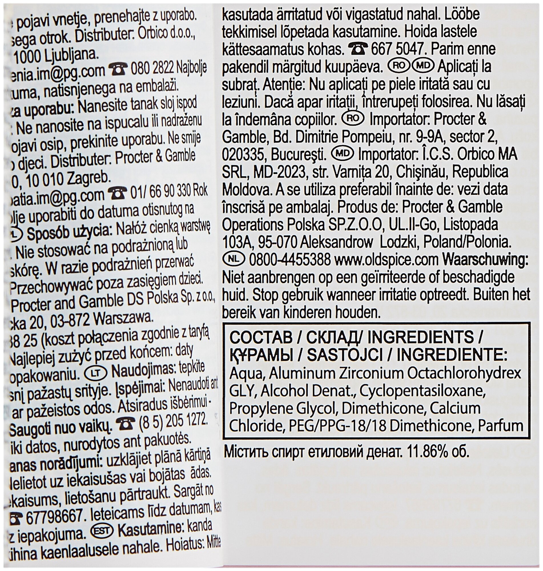 | Состав | Aqua, Aluminum Zirconium Octachlorohydrex GLY, Alcohol Denat., Cyclopentasiloxane, Propylene Glycol, Dimethicone, Calcium Chloride, PEG/PPG-18/18 Dimethicone, Parfum, Citronellol, Coumarin |
