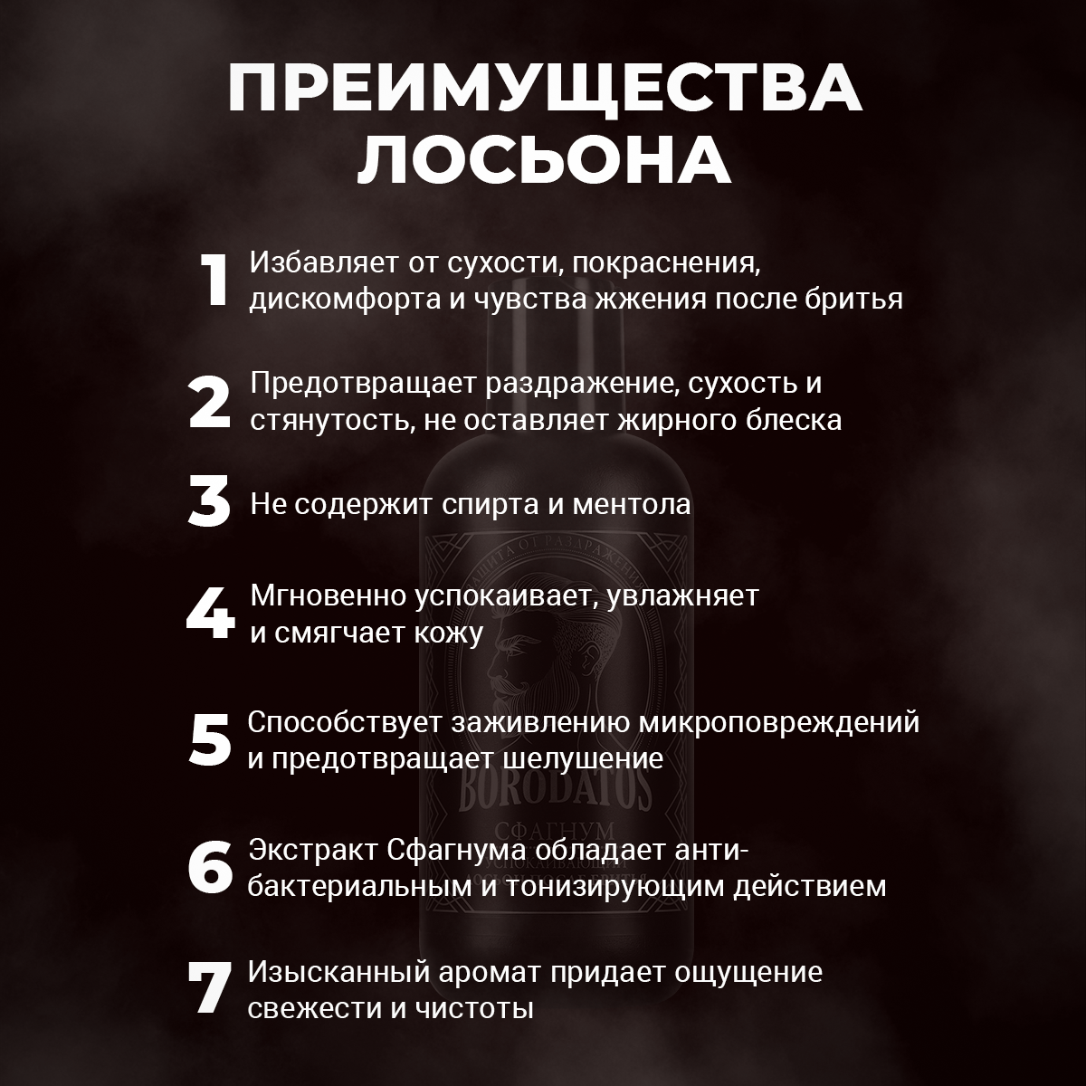 Borodatos Лосьон после бритья успокаивающий, Сфагнум, без спирта, 200 мл интересное: