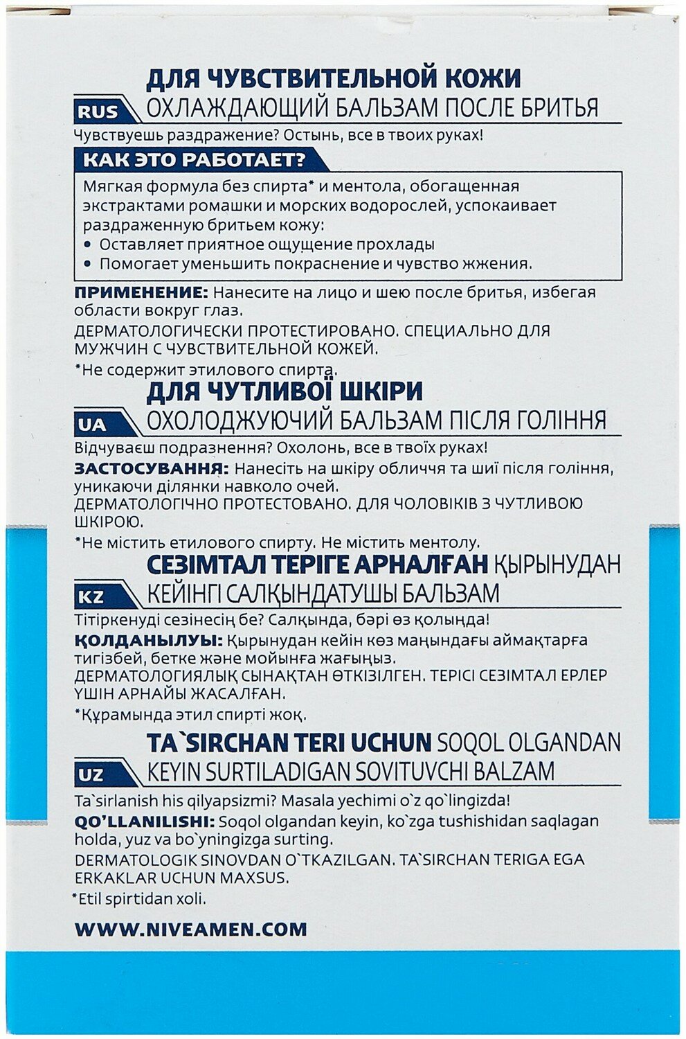 Бальзам после бритья охлаждающий Nivea Men для чувствительной кожи, без содержания спирта, 100 мл.