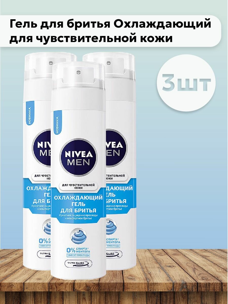 Nivea Men Гель для бритья для чувствительной кожи Охлаждающий, 200 мл - 3 шт
