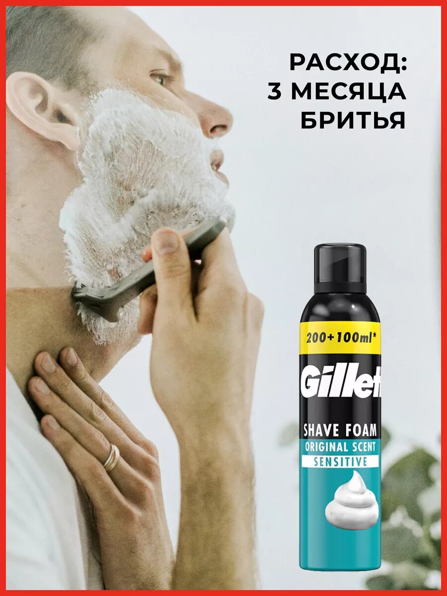 Пена для бритья GILLETTE для чувствительной кожи, 200 мл (2 упаковки)