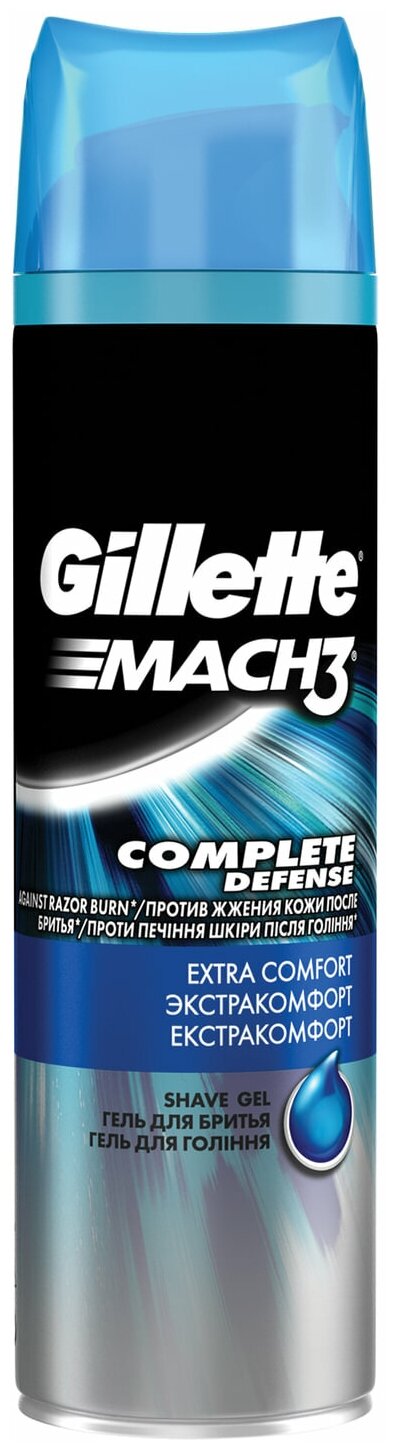 Ниже Вы можете прочитать отзывы на Гель для бритья MACH3 Complete Defense экстракомфорт Gillette, 200 мл, ознакомится с подробными характеристиками, посмотреть интересные обзоры и фотографии на Гель для бритья MACH3 Complete Defense экстракомфорт Gillette, 200 мл.
