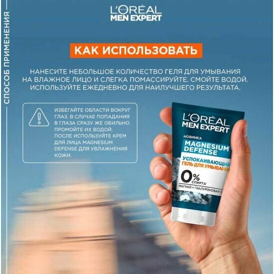 L'Oreal Paris Гель для умывания Men Expert Magnesium Defence успокаивающий, 100 мл/100 г