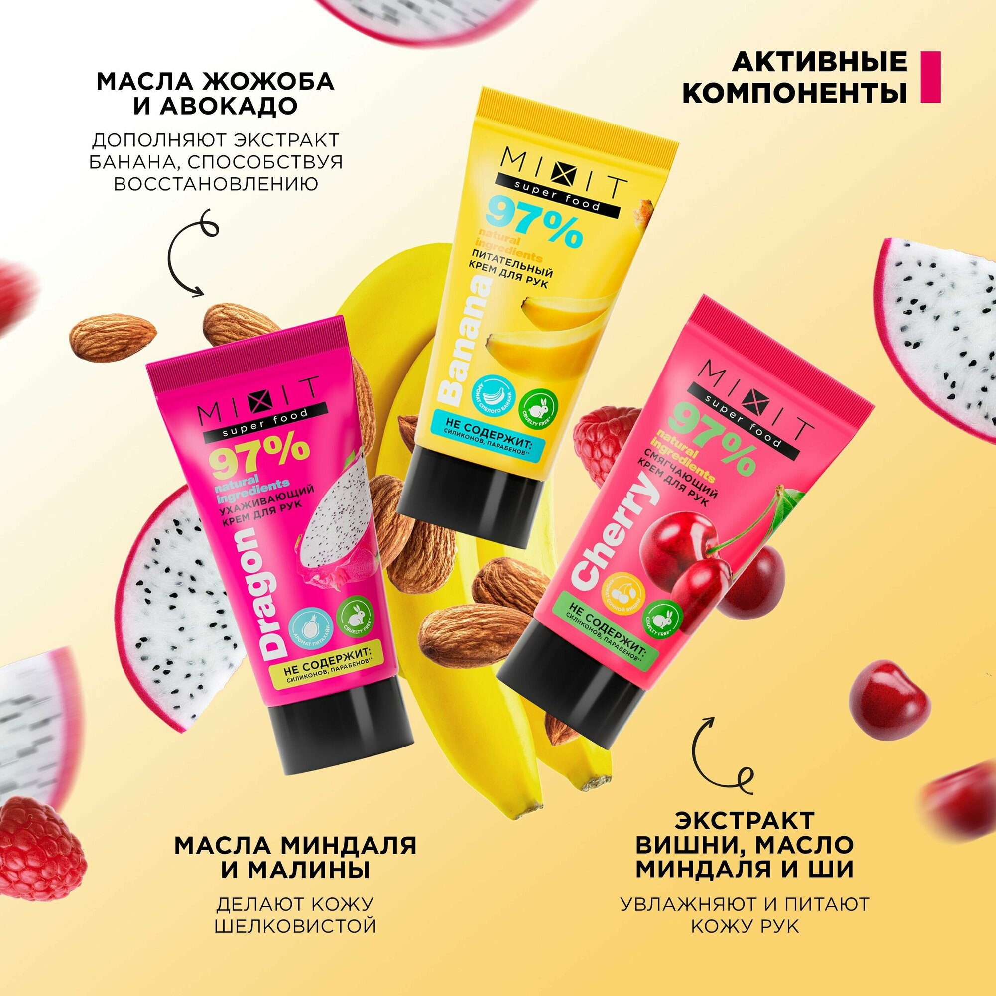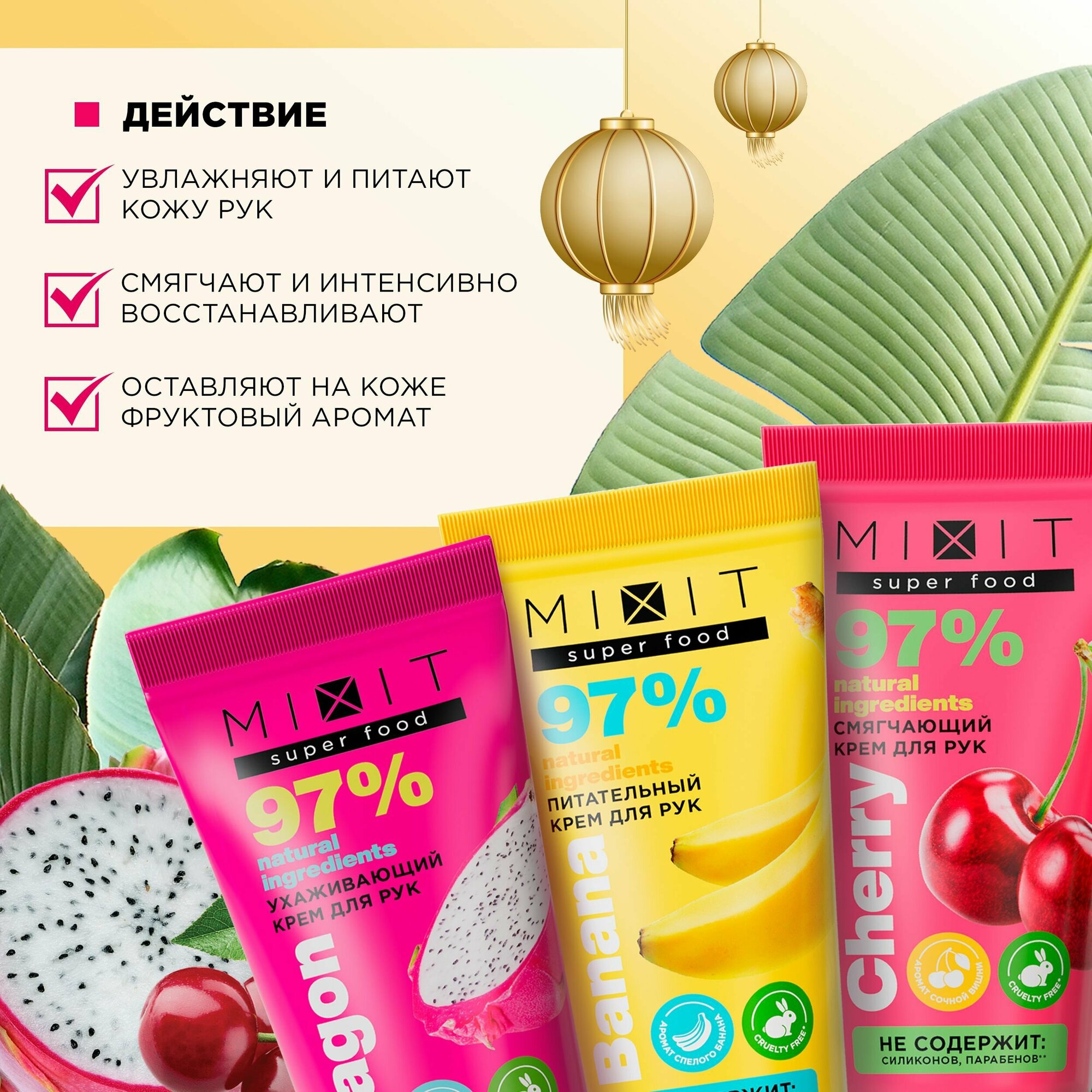 MIXIT Подарочный набор косметики по уходу за кожей рук: увлажняющий, питательный, крем с натуральными экстрактами и маслами SUPER FOOD, 3 шт. интересное: