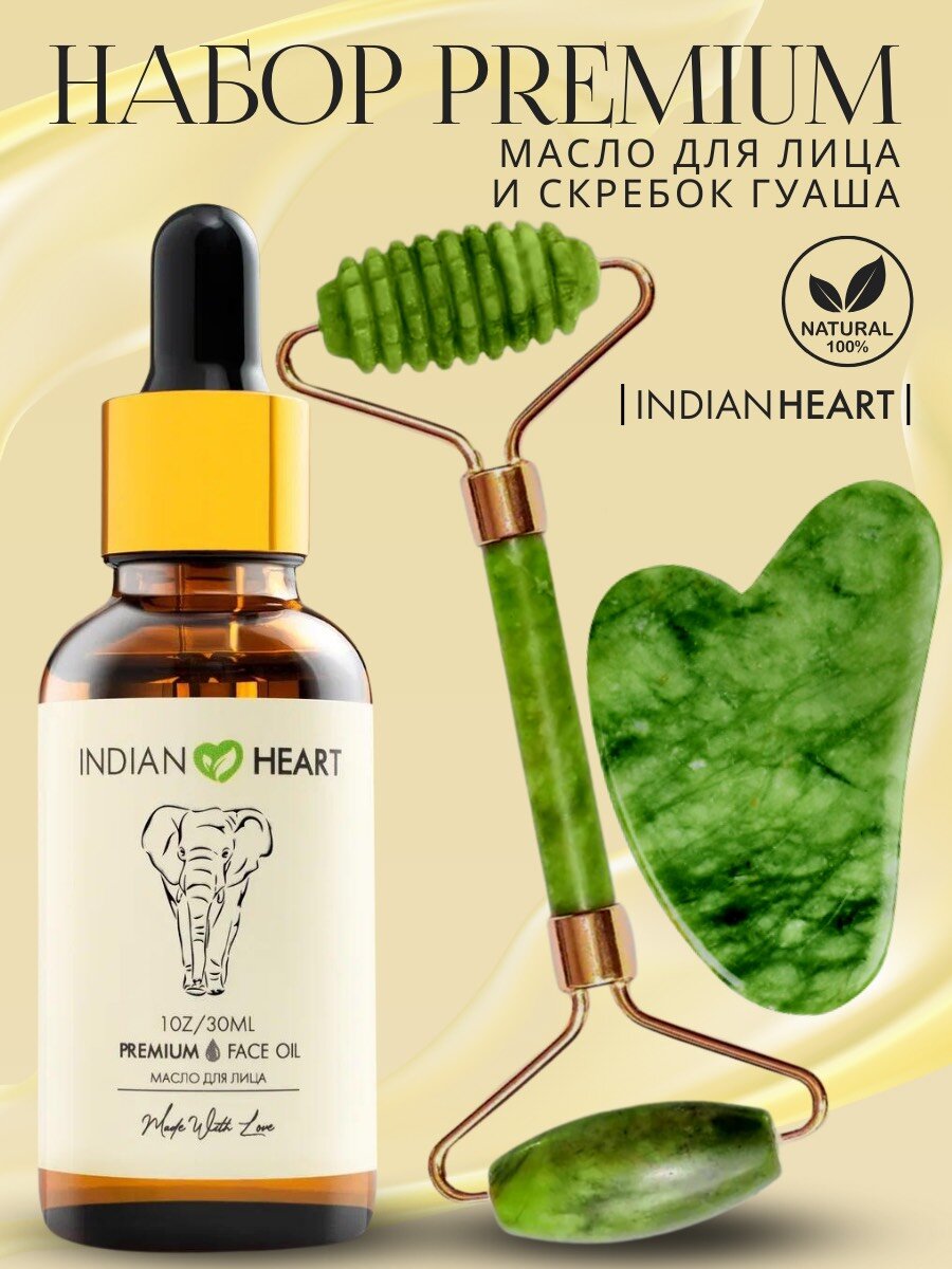 Купить INDIAN HEART Массажный набор масло скребок Гуаша и ролик для массажа лица