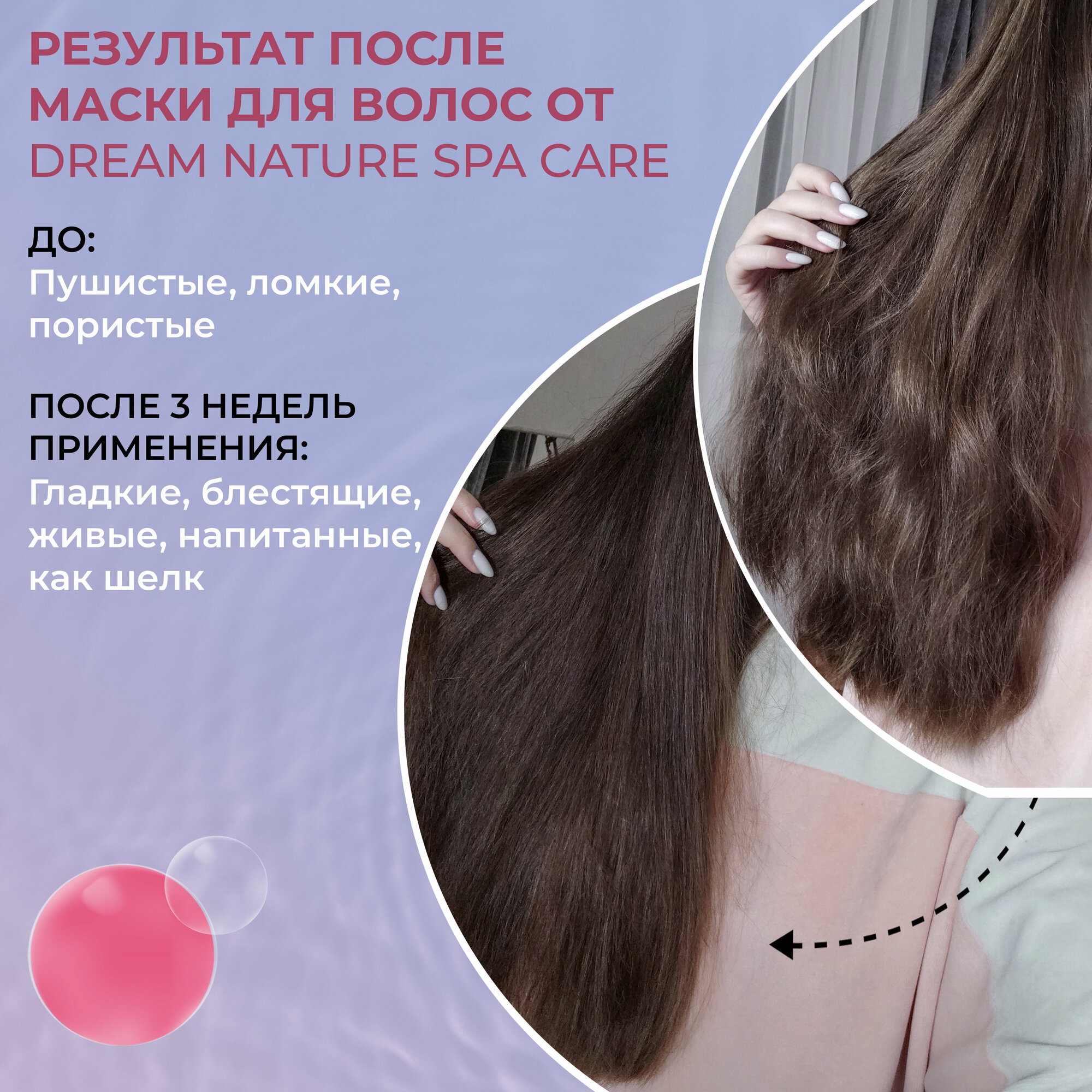 Набор уходовой косметики: Маска для волос Увлажнение и питание + Скраб для тела Антицеллюлитный + Соль для ванны с розой DREAM NATURE SPA&CARE