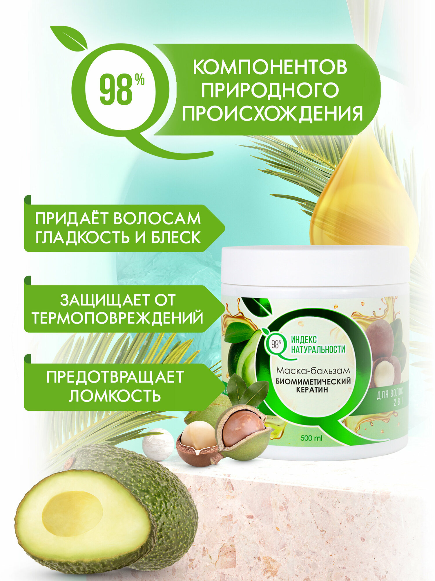 | Активный ингредиент | витамин E / витамины / кератины / молочная кислота / пантенол (провитамин B5) / протеины пшеницы |
