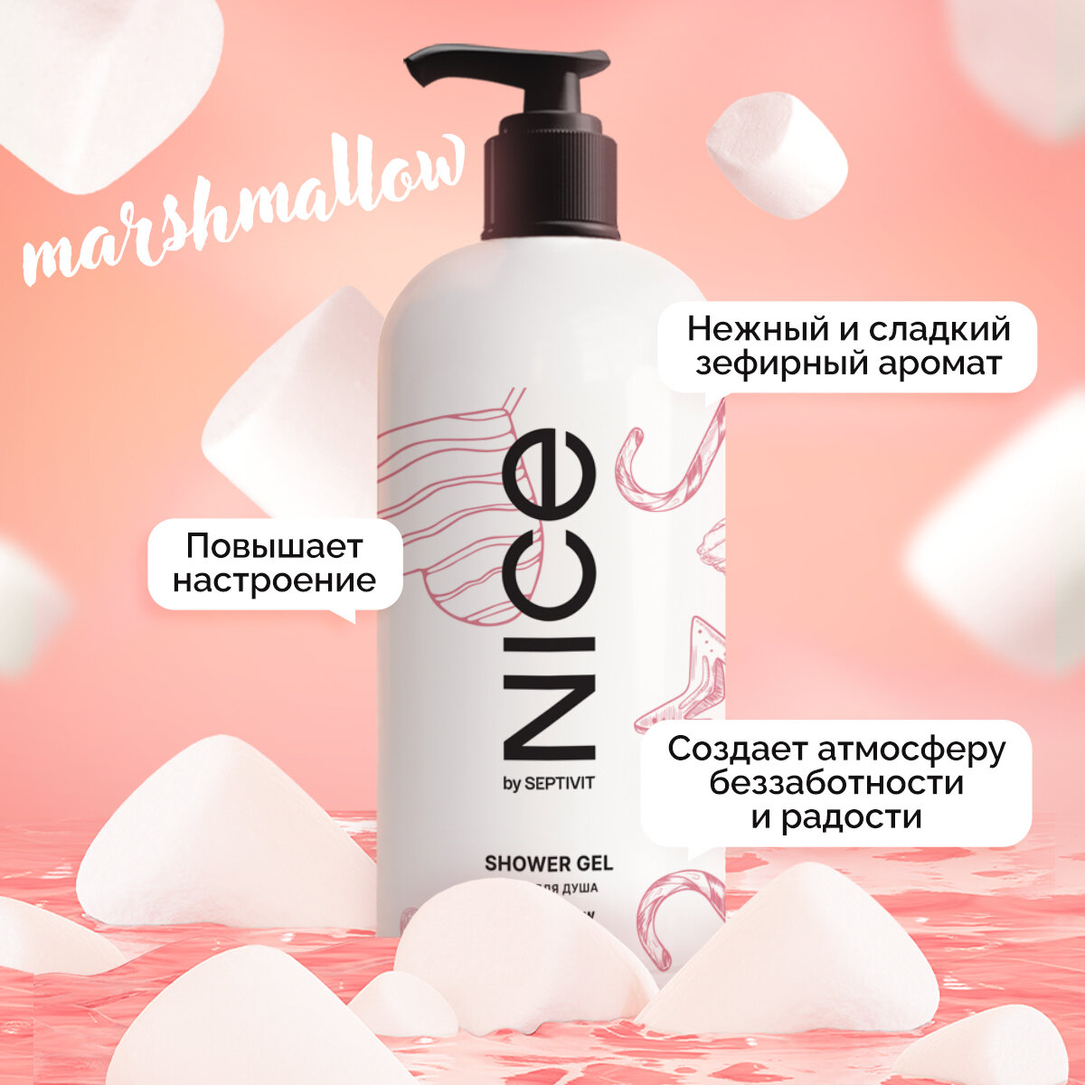 Купить Nice by SEPTIVIT Женский подарочный набор Шампунь Nice 1 л + Гель для душа Nice 1 л “Marshmallow”