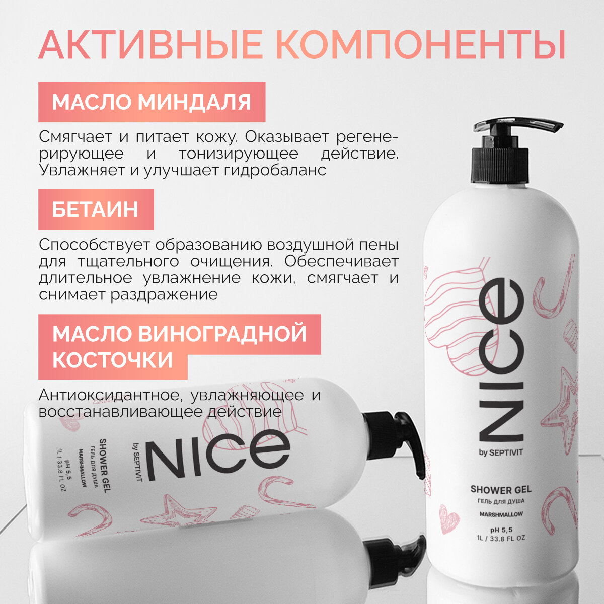 Nice by SEPTIVIT Женский подарочный набор Шампунь Nice 1 л + Гель для душа Nice 1 л “Marshmallow” интересное:
