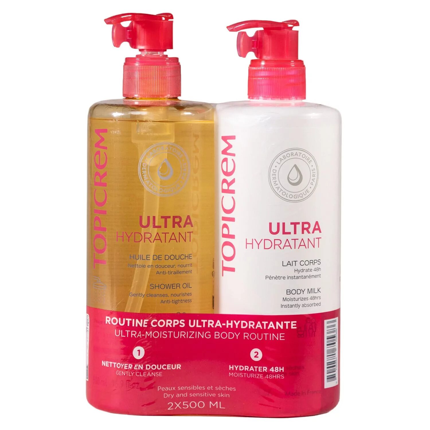Купить TOPICREM набор Ультра-увлажняющее молочко для тела 500 мл + Ультра-увлажняющее масло для душа 500 мл ( скидка 50% на 2-ой продукт)