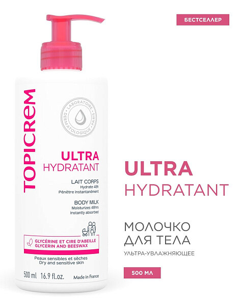 TOPICREM набор Ультра-увлажняющее молочко, 500 мл + Ультра-увлажняющее масло для душа, 500 мл