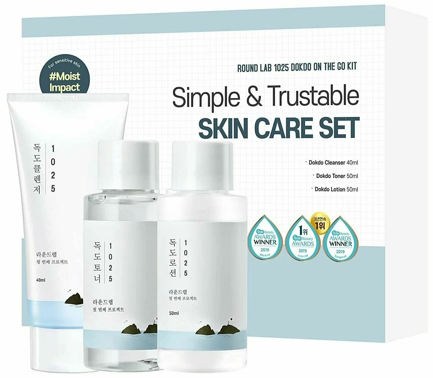 Купить ROUND LAB / Набор для ухода за кожей Roundlab 1025 Dokdo ON THE GO KIT (Тонер + Лосьон + Очищающее средство)