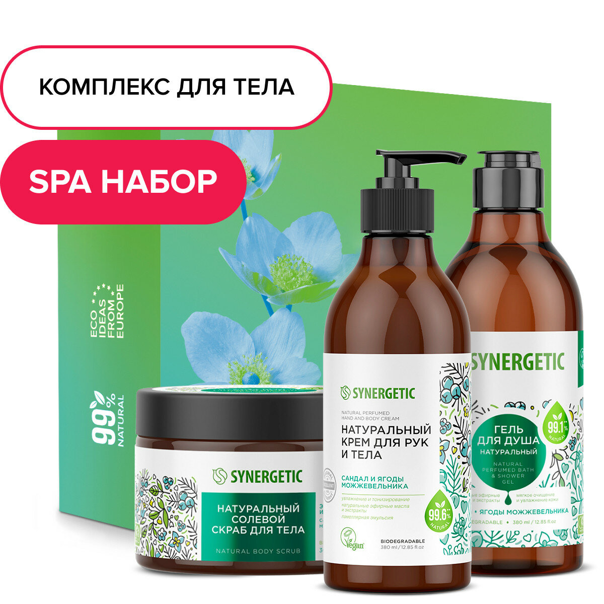 Подарочный набор SYNERGETIC "Комбо для домашнего SPA" для очищения, увлажнения и ухода за кожей рук и тела интересное: