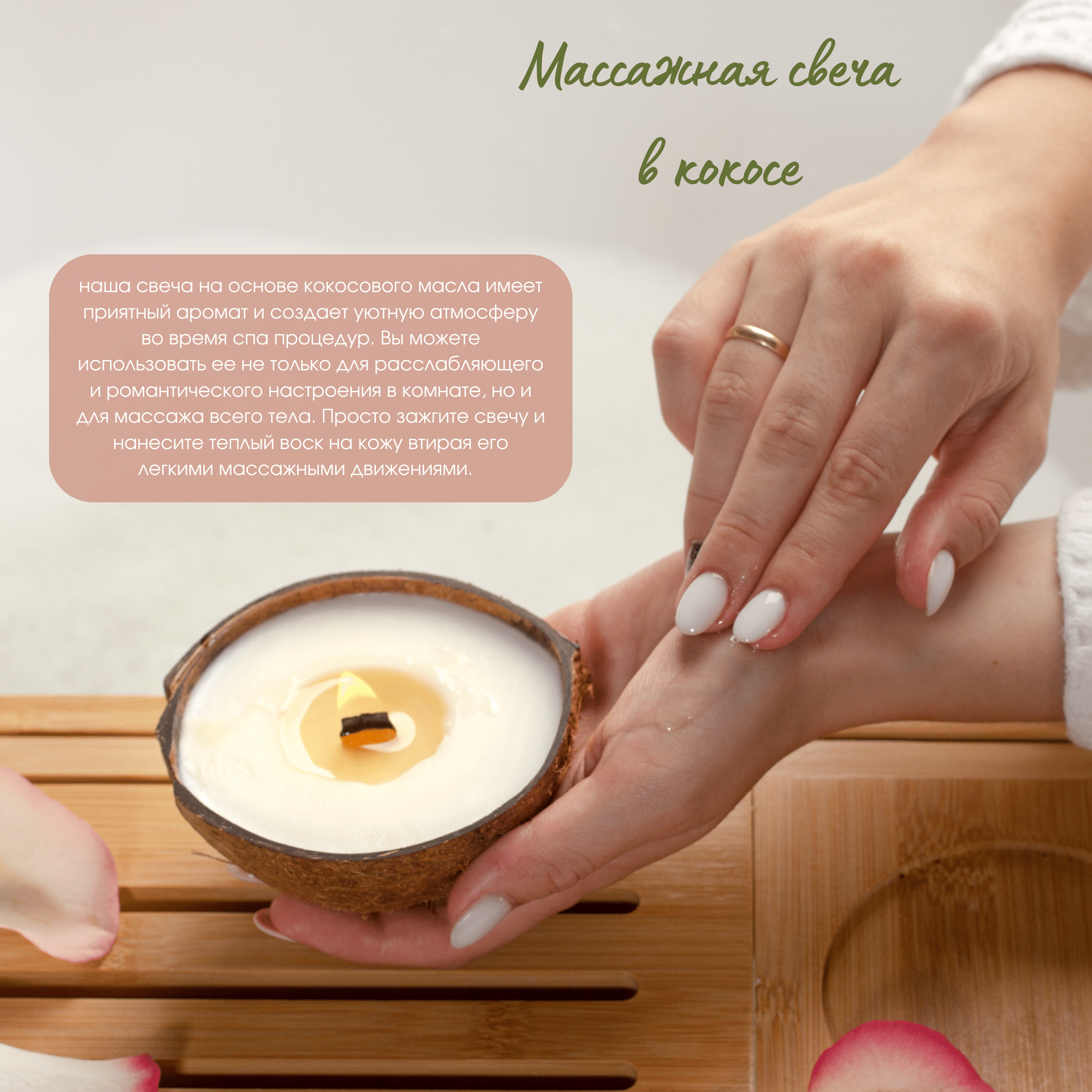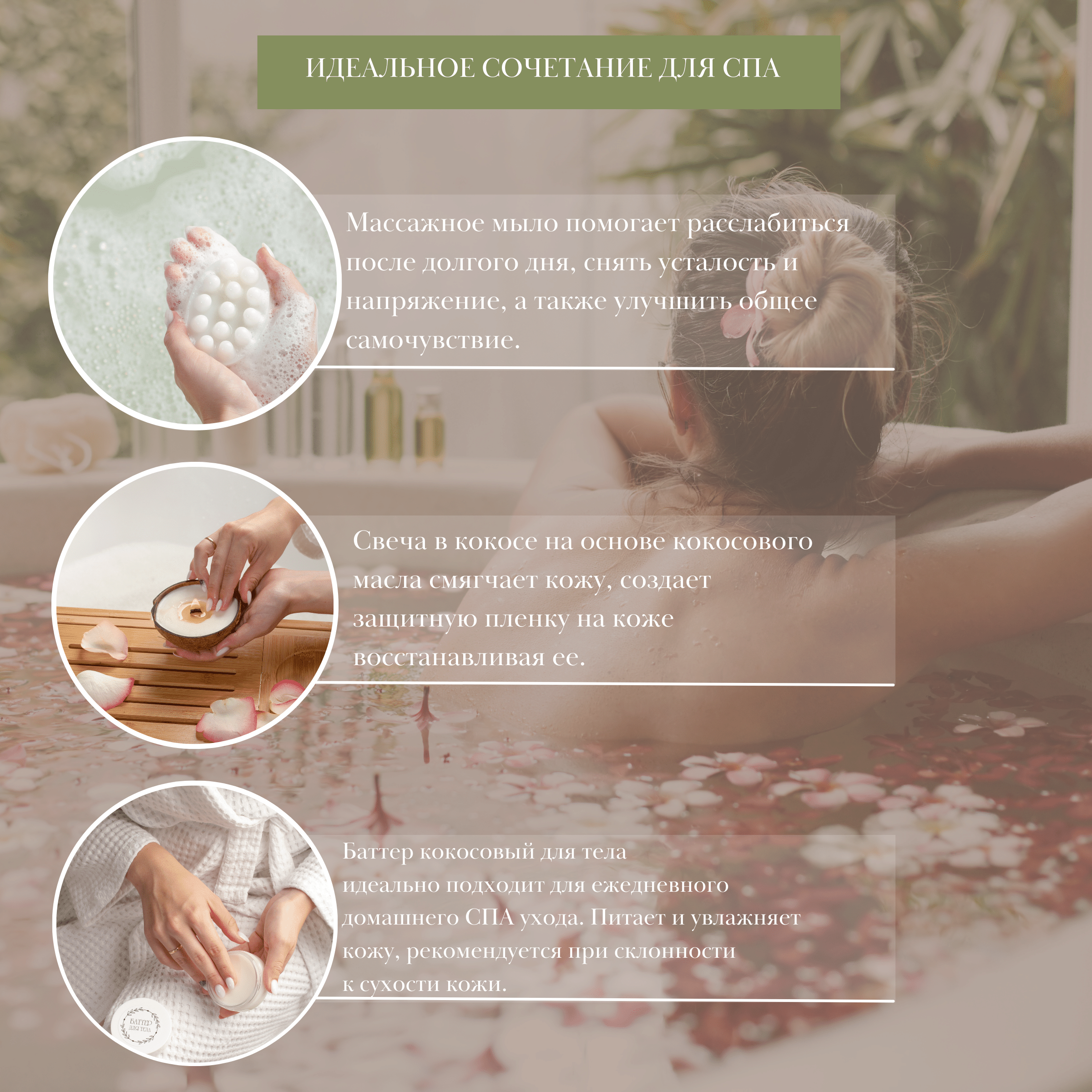 | В наборе | баттер для тела, свеча в кокосе, гипсовая подставка для свечи, массажное мыло с ароматом кокоса |
