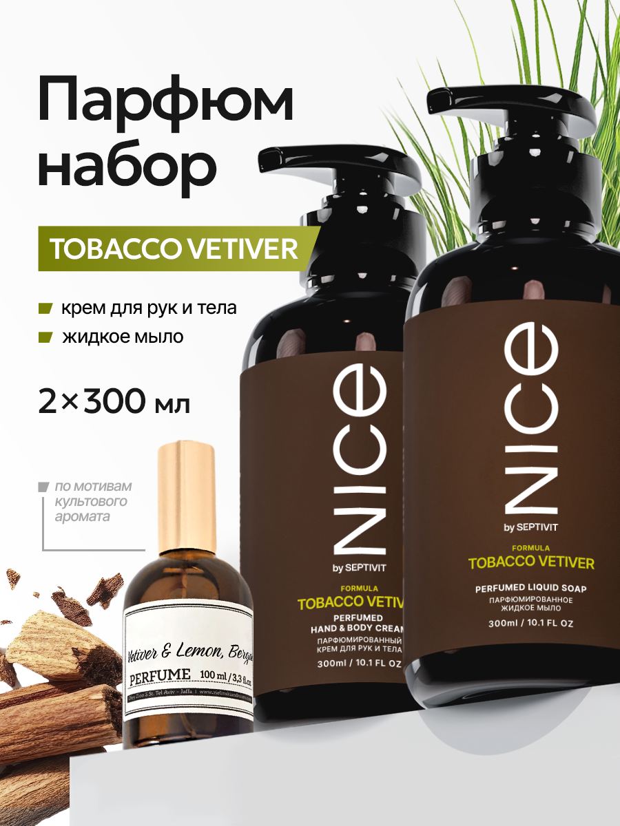 Купить Набор NICE by Septivit Мыло жидкое для рук 0,3л + Крем для рук и тела "Tobacco Vetiver" 0,3л